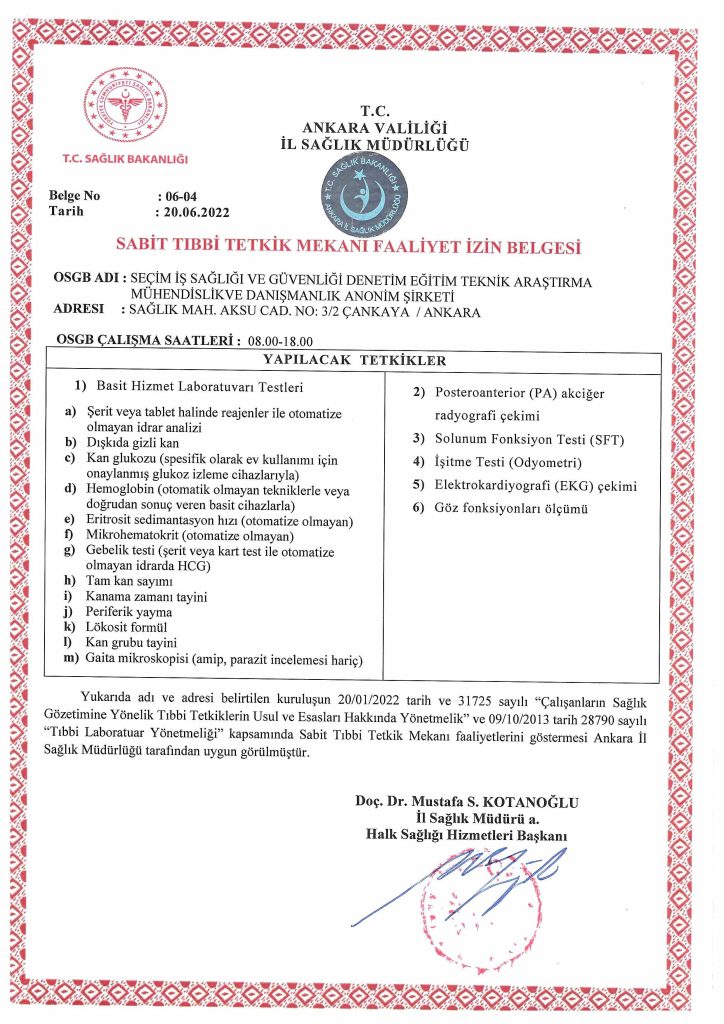 Laboratuvarlarımızda İşe Giriş Sağlık Raporu (Ek-2) ve ilgili tetkikler yapılmaktadır. Tetkiklerimiz arasında: