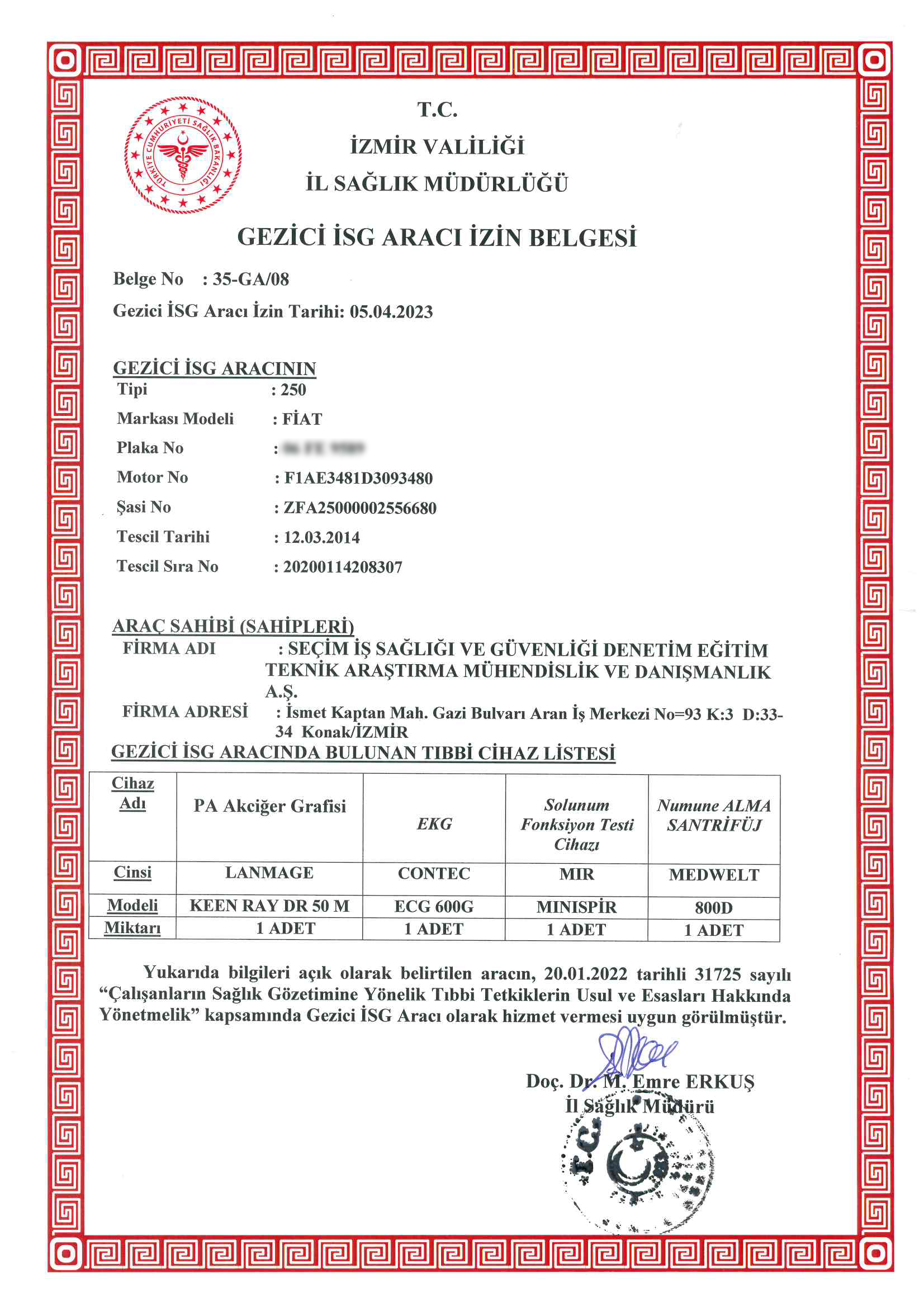 - İZMİR SABIT TIBBİ TETKİK MEKANI BELGEMİZ